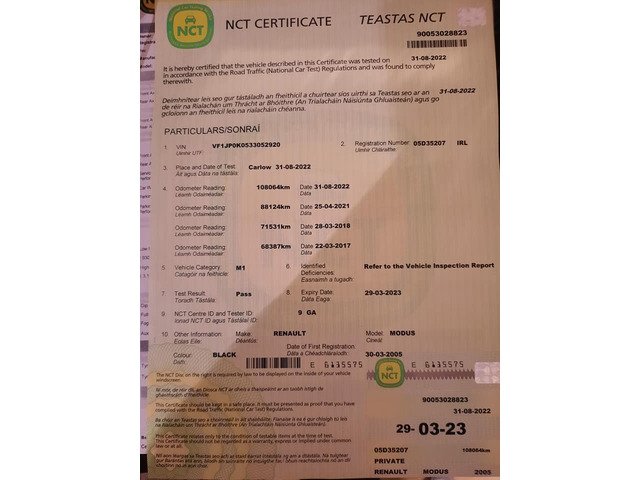 05 Renault modus 1.1 L New NCT 29/3/23 and Tax 10/22