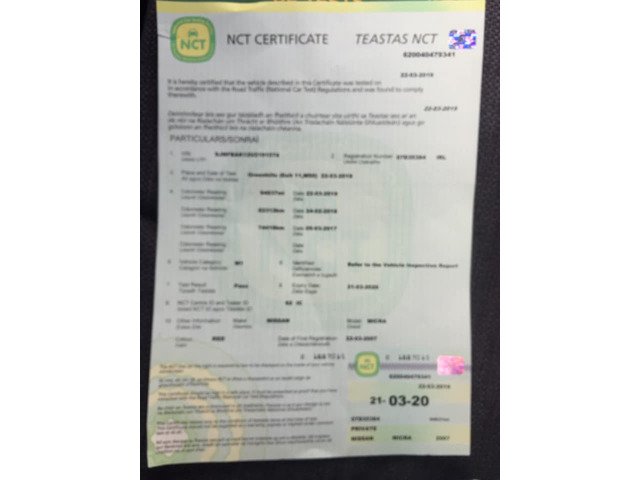 2007 Nissan Micra, manual, only passed nct on Friday 21/03/20, low mileage 95,000k, 2 keys, service history, electric windows, central locking, CD player, etc