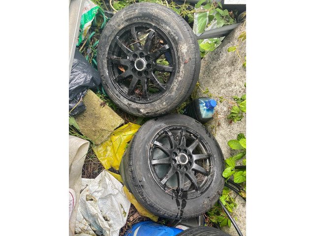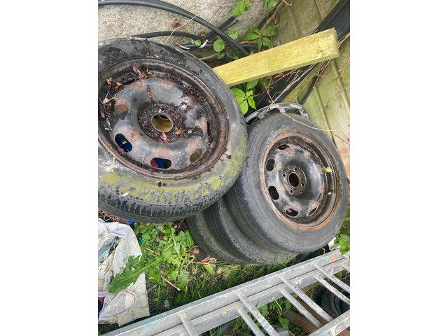 15 inch 4x108 steelies and 15 inch black 4x100 and 4x108