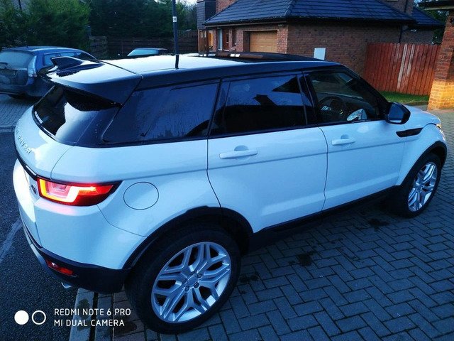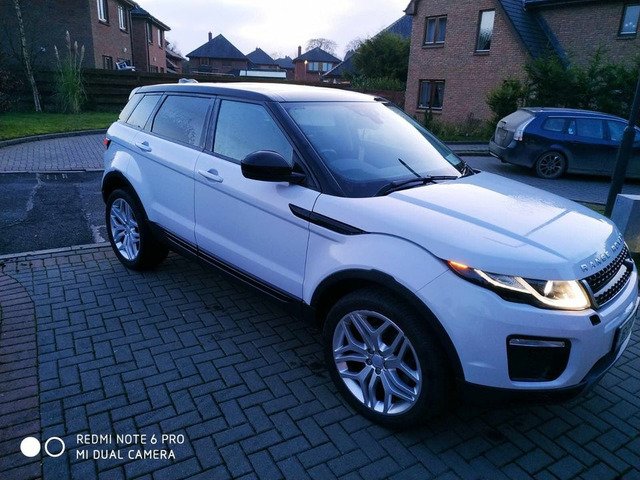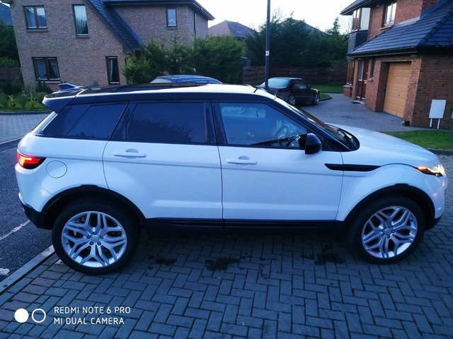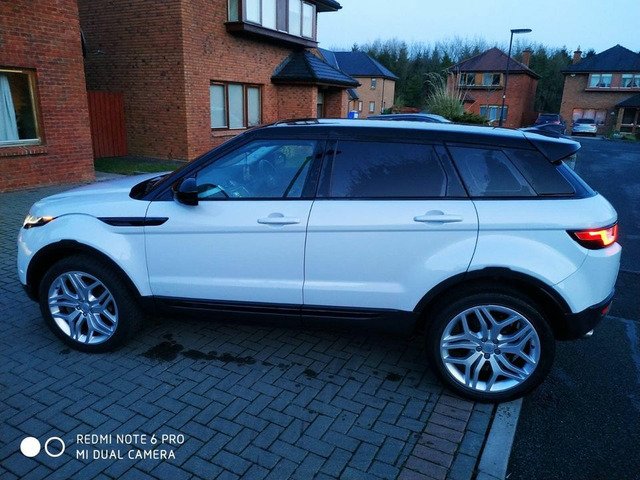 161 Range Rover evoque,2,0 d,facelift model,nct,tax,4*4,8 speed automatic,sat nav,120 k mls,2 keys,2owners,recently serviced,rear new pad’s fitted,paddle shifts,black panoramic roof,with electric curtain,pearl metallic white,20” alloys, leather heated interior,line assist system,heated windscreen,with rain,lights sensor ,factory tinted windows,folding mirrors with jeep sign,factory bi xenon’s,leds around,usb,have brand new tow bar for it,never fitted,selling reason-have new car both 27250€