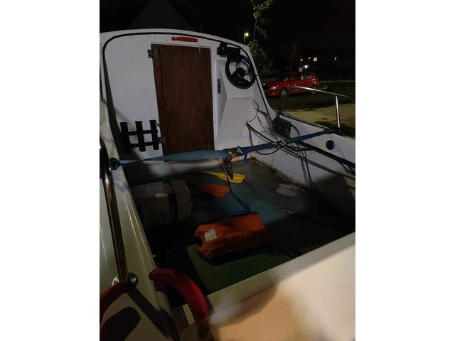 17foot pilot boat, 40 hp engine, two stroke yahamma on back, solar panel, internal and external lighting, CB radio and VHF radio, 12v cigarette charger plus dual USB charger.illuminated compass. Navigation lights.