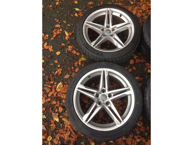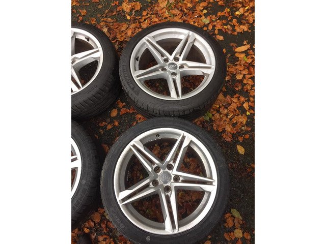 For sale genuine 18’ Audi S Line alloy wheels in very good condition 5x112 8,5Jx18H2 ET29. No cracks welds or buckles. All tyres are 245/40/18 2x new tyres and 2xMichelin around 75%thread. Some small curb marks but nothing major. Accept PayPal. Buyers cover PayPal fee. Price included postage by courier.PLEASE NO STUPID OFFERS OR TIME WASTERS!!! Less