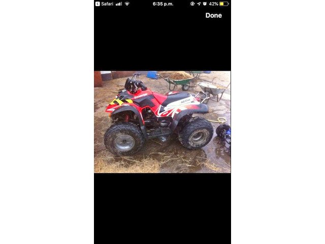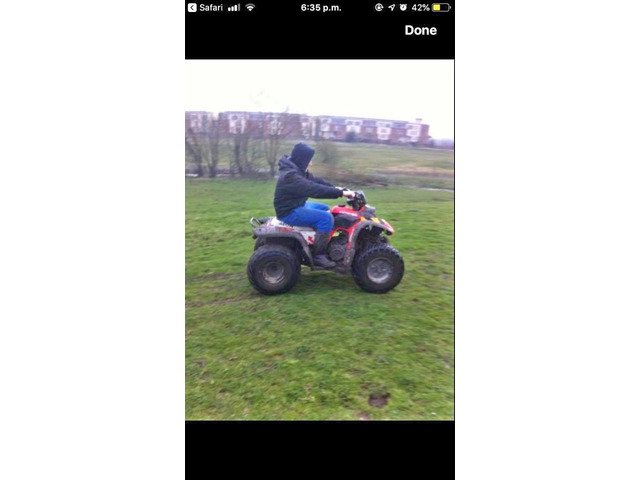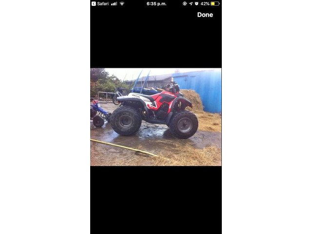 Big quad . Good tyres would suit teenager//adult.Needs small bit of repair. New kick start gone in.Pictures do absaloutley no justice . Automatic quad,with a electric start. Starts ,just needs a new front sprocket cheap fix chain is perfect on it back sprocket is good. Front and back brake works perfect. Pm for any other questions