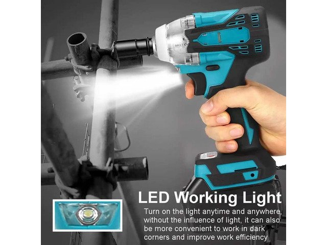 18V 2 In 1 Brushless Cordless Electric Impact Wrench 1/2Inch Power Tools 15000Amh Li Battery LED light Adapt To Makita Battery