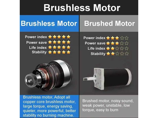 -The brushless motor does not generate sparks when it is working, and the motor does not wear.