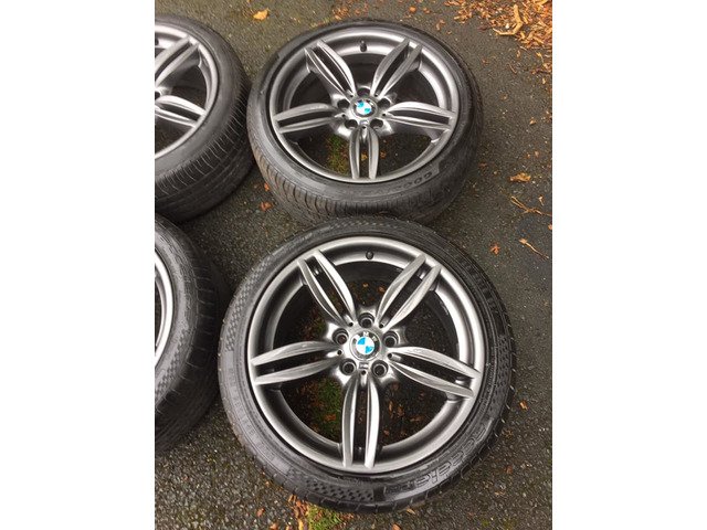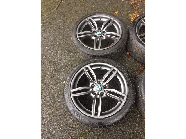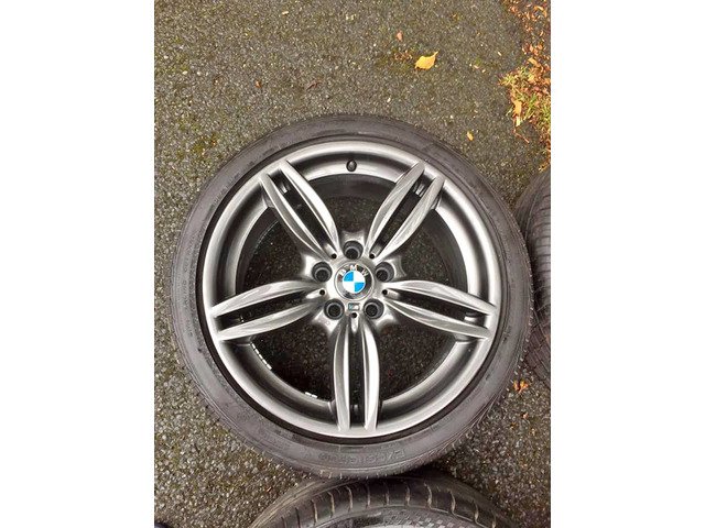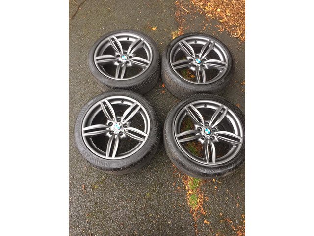 For sale genuine 100% BMW F10 351 M Sport 19 inch alloy wheels 5x120. No cracks, welds or buckles. All wheels in immaculate condition. Tyres in good condition Front 245/40/19 and Rear 275/35/19 around 90-80%. I may consider take trade in. PLEASE NO TIME WASTERS OR STUPID OFFERS