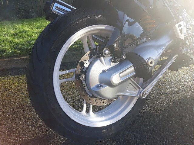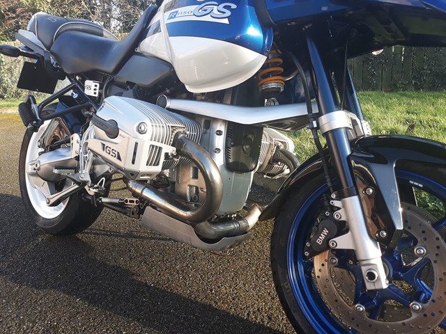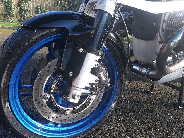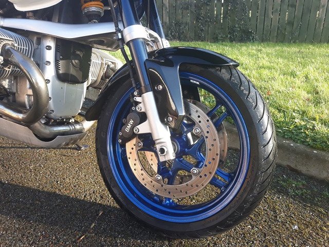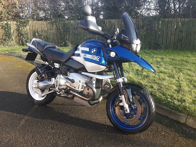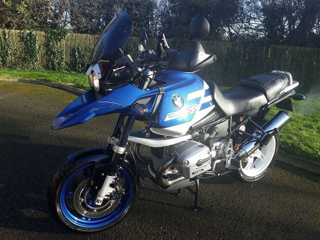 21,000 miles, exceptional condition, Ohlins suspension front and rear, Pirelli Angel GT tyres on R1150RT wheels, (original spoked wheels in excellent condition included) R1200RS front mudguard on custom mount, ABS and brake servo all working perfectly, alloy cylinder head guards, 3 piece BMW luggage system with specific liner bags, pannier locks coded to ignition key, Dark screen plus original. Also included are a nice set of engine bars (one lug needs welding as it has cracked) and a very neat set of auxiliary lights on an alloy mounting bar. A set of new Venhill braided brake hoses that i intended to fit is also included.