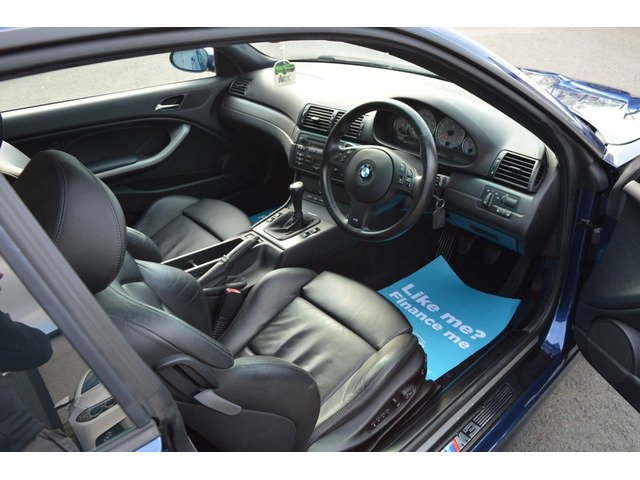 2005 BMW E46 M3 manual with a warranted 66k miles from new by its one and only registered keeper and finished in stunning unmarked Mystic blue paintwork. The car comes on polished 19"s with full LCI light pack front fogs and adaptive Bi xenons. The interior spec is stunning with immaculate black leather electric memory seats leather multi function steering wheel digital climate control air con and cruise control. The car comes as standard with anthracite headliner M Sport mode auto lights and wipers the original 3 keys original mats tool kits first aid kit compressor even all the original tax discs from new .This is a rare low mileage one owner un abused M3 with everything it left the factory with intact and still with the car, there is not one paint blemish or wheel scuff to report this car is simply flawless an ideal collector example with year spec condition and mileage all but impossible to find at the minute,