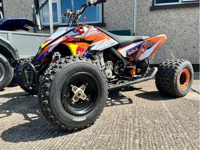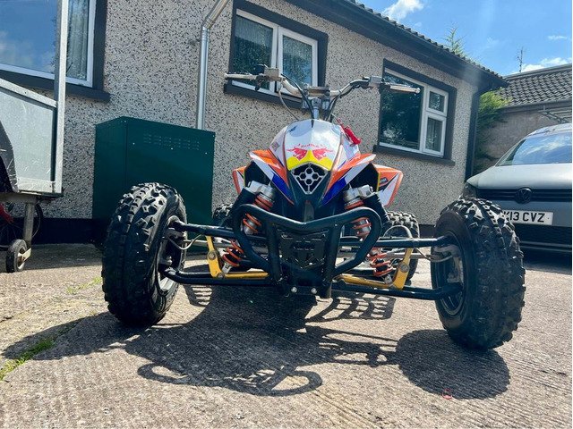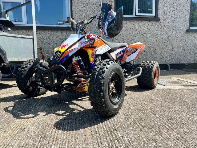 Just after a load of bits there new battery with kill switch genuine brand new race cdi genuine pulse coil genuine new tether switch genuine sight glass oil and filter new plug new graphics rare hood with eye lights bead lock rear wheels wider front arms was the guts of 800 real good going quad loves the back wheels after a swap for a jet ski , classic car no shite or money !!!!