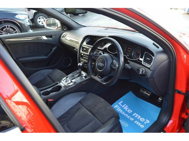 March 2015 registered Audi RS4 Avant with a warranted 44k miles from new complete with a comprehesnive service history and finished in unmarked Missano red paintwork. This car comes loaded with spec comprising of adaptive bi xenon headlights LED daytime running lights 20" upgraded RS4 alloys power tailgate privacy glass roof rails and brushed aluminuim mirrors. Interior spec comprises of unmarked heated half leather with Audi HDD navigation digital climate control air con cruise control and Audi drive select. Leather multi function steering wheel with F1 style paddleshift controls center armrest and adaptive suspension with damper control. Brand new OEM brakes were fitted at a cost of over £1k so the car is sitting ready to drive away .