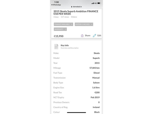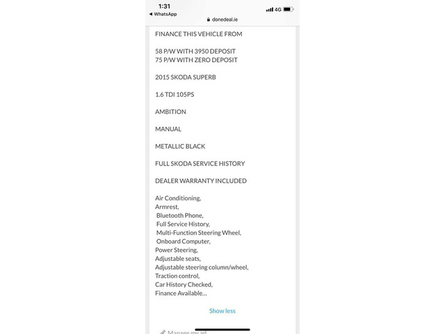 2015 Skoda Superb Finance this car from €58 P/W