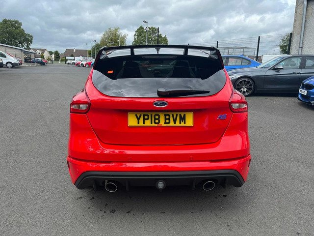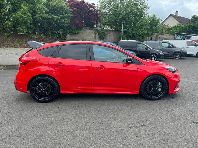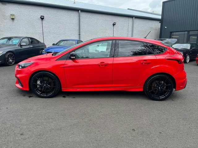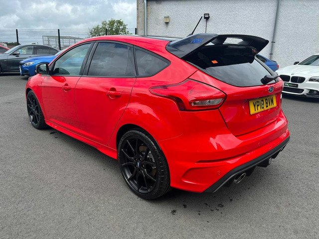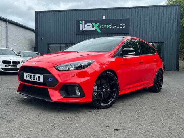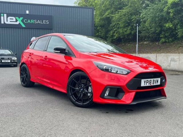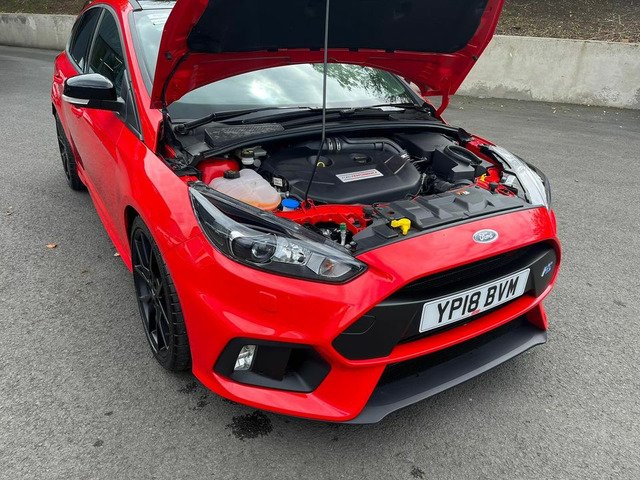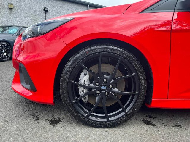 April 2018 registered Ford Focus RS red edition with only 10 miles from new by its only keeper and finished in stunning unmarked race red paintwork being one of only 300 produced UK wide in this colour. This car with only having 10 miles has 2 ford service stamps at 6 and 8 miles respectively and sits without having even been retail prepped by Ford with all the protective transport films present on all the touch points. Production line stickers are all still present on front and rear screens the RS mats are still in the sealed plastic bag in the boot of the car. Spec wise this Red edition sits on forged alloys factory lux pack Recaro shell seats sync 3 navigation active city stop adaptive Bi Xenon headlights gloss black roof Quaiffe active differential gloss black spoiler led ambient lighting winter pack with heated steering wheel (no heated seats with seat upgrade) dual zone digital climate control and flat bottom leather RS embossed multifunction steering wheel and alloy pedals.