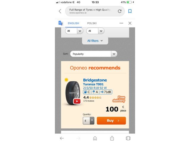 For sale in very good condition 3x Bridgestone Turanza T001 215/50/18 92W with thread around 90%. Can posted by courier. Accept PayPal. NO TIME WASTERS OR STUPID OFFERS!!!!!
