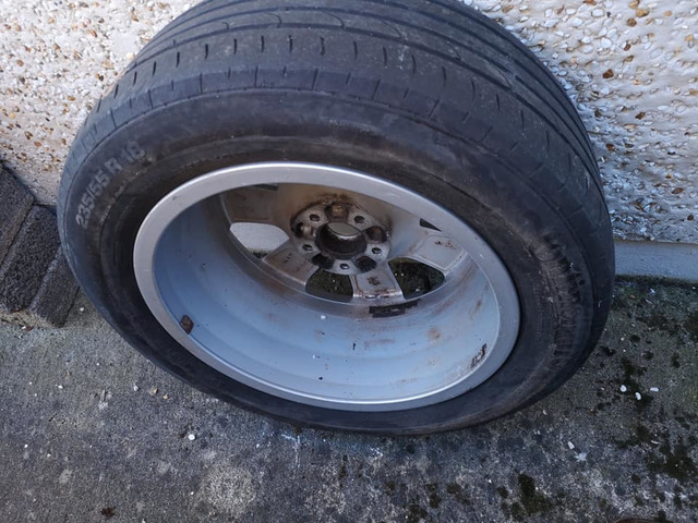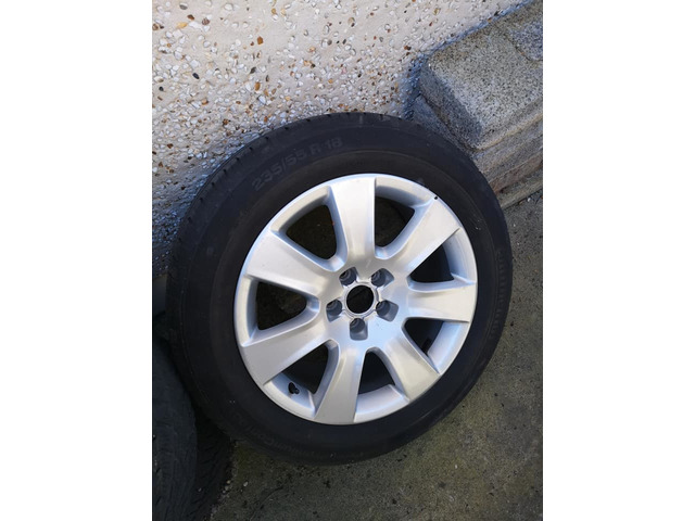 18 inch alloys, excellent condition. Where used for 6 months. First to see will buy. Original alloys from Audi A8. Tires excellent. Cost like 140 plus a tíre.