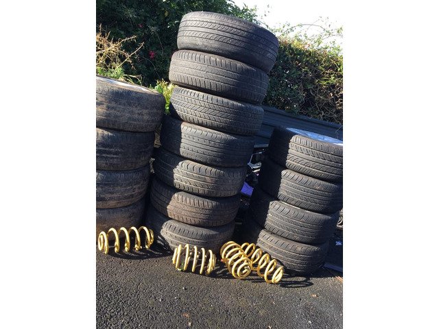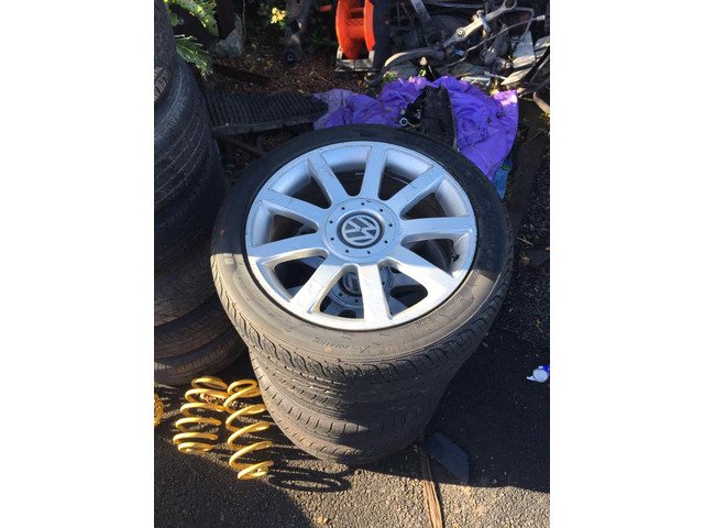 Full set of vw multifit (5x100 + 5x112) alloys. 4 brand new tyres 225 45 17. €300. Audi rs6 alloys. Could do w a refurb bad tyres all caps there €150. 7 steel 5x112 wheels 2 nearly new tyres 2 of em 14s. Rest 15s 60 euro for 7 wheels all tyres nct passable wil do deal on everything. B5 , Audi A4 , a6 golf 50mm lowering springs €50 euro. Have a awx pd engine there too with a6 gearbox. Engine and box 100 percent. € 150 lift engine and box