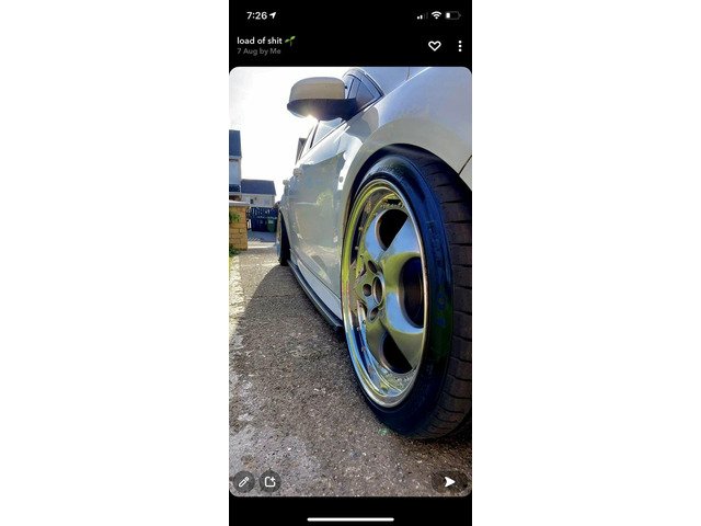 Swap for 5x107 or 5x112 all in good condition no curb marks welds or buckles chrome lip is mint 2 peace wheel 4 brand new tires 8j 17s