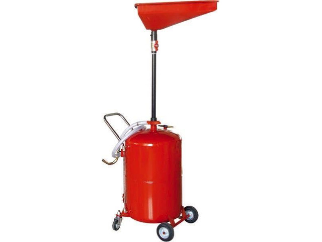 When draining engine oil, its vital to ensure safe disposal of the wate. this oil drainer has built in wheels for easy direction, and has a massive 65ltr tank allowing you to drain up to 15 cars before emptying. For quick emptying it has a built in air discharge function, Simply hook it up to a air line to pump the wate oil out, into a disposal container.