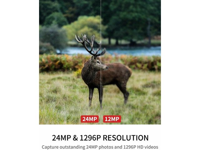 90€ 24MP Hunting Trail Camera with Night Vision Motion Activated IP66 Waterproof and 120°Wide-Angle