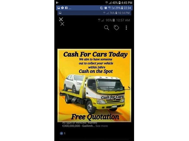 All types of cars and vans wanted for cash trucks buses Jeep campers caravans motorbikes quad bikes generators forklift tractors non runners damage repairable all wanted for cash call me on 0852133607