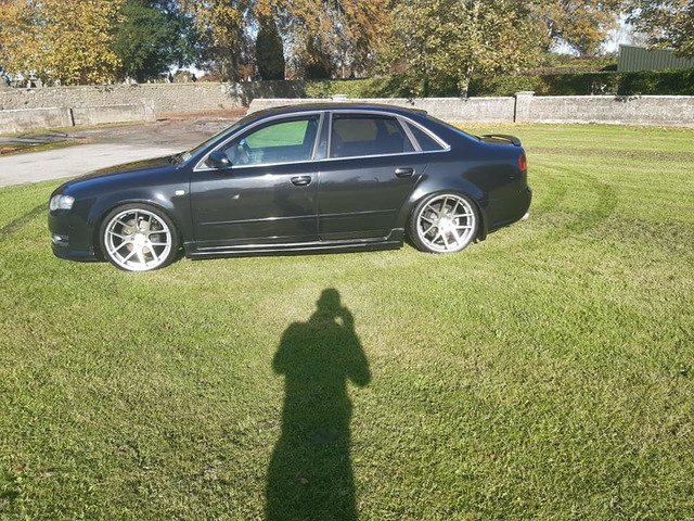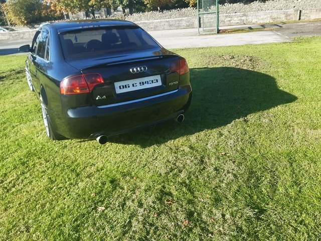 Audi A4 sline kitted Nct &Tax 165bhp remapped coilovers alloys new tyres 3 bk windows tinted twin power flow Exhaust pop corn limiter bad points needs top link on drivers side pm for more info no time wasters offering there dole money
