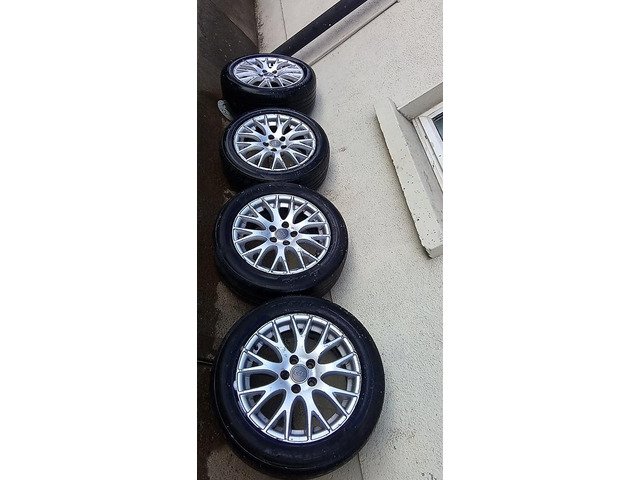 Audi alloys for sale 5x112 one has a small crack other three is perfect all good tyres 180 euro Ono