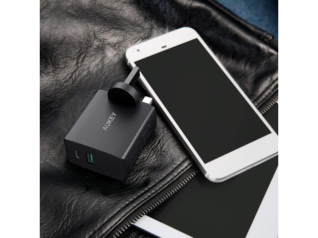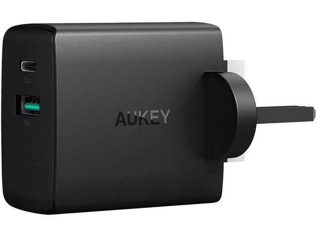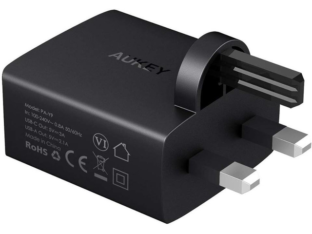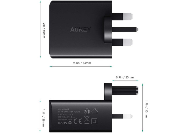 AUKEY USB C Wall Charger Dual Port USB A 5V 2.1A + USB C 5V 3A Mains Charger for iPhone X / 8 / 8 Pl
