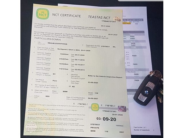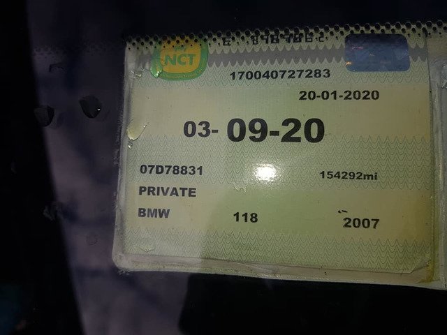 Bmw 118.D 2.L NCT .09.20 TAX 01.20 154.ML New NCT just pass last week full service done. The car has very good power the only problem is the driver door as you can see in the picture need paint or you can drive it like this if you need more info call me on [hidden information] No Swap no swap and no silly offers pls