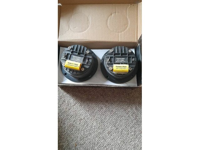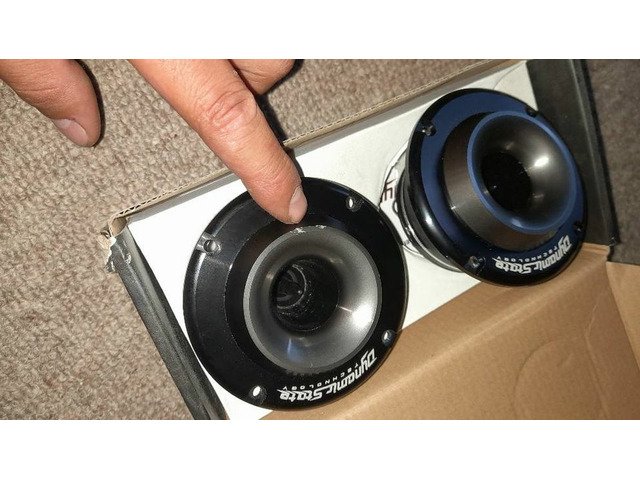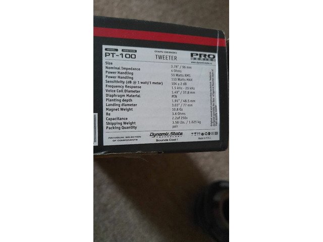 tweter car dynamicstate 50w rms piece I have two sets, they have never been used, I am selling them to get something smaller, the price is for two sets+4 ring