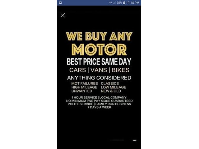 All types of cars and vans wanted for cash trucks buses jeeps campers caravans motorbikes quad bikes generators forklift tractors non-runners damaged repairable all wanted for cash pm what you have