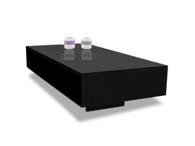 This rectangular coffee table in high gloss black has a modern, elegant look and feel, and will complement the furniture in your home. It can be used as a coffee table or as a side table.
