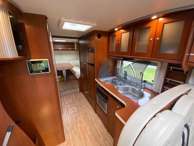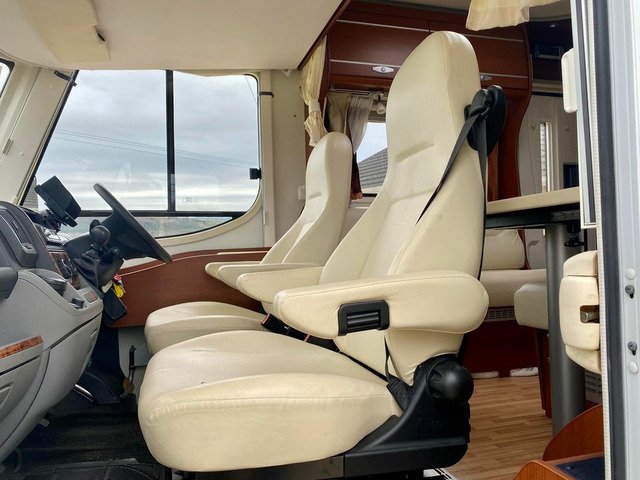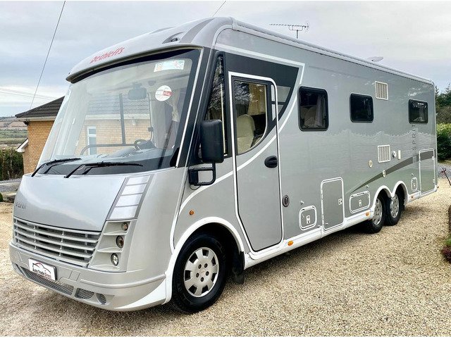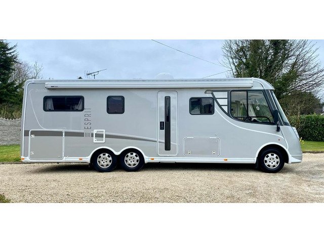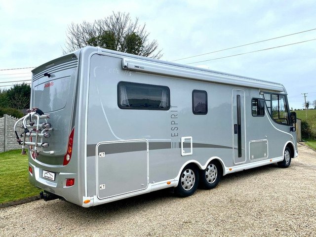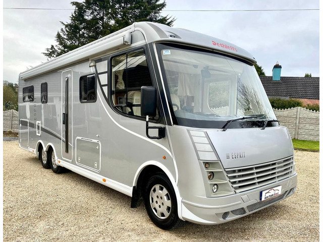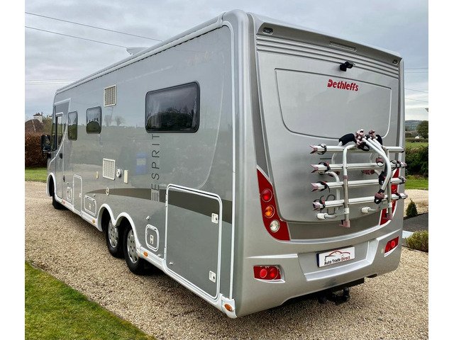 Dethleffs Esprit Luxury Motorhome, Tag Axel Right Hand Drive, Huge Spec 2008 Demo Model First Registered In 2010, Stunning condition, Irish Motorhome From New, 2 Owners, Stunning Condition, 5 Tonne C1 Licence, Low mileage only 45k km’s, New DOE Test, Fiat Ducato 3.0 160ps diesel. 6 speed manual gearbox, reverse camera, bluetooth, cruise control, cab air conditioning, Alko Tag axle chassis, Truma habitation air conditioning, full cream leather interior, underfloor storage, winterised, privacy blinds, security nets and Ladder. Front Lounge comprising Twin swivel front cab seats, Half dinette with two additional travel belts, Dinette table, Large side sofa, overhead storage cabinets and Large Heki roof light. leather upholstery,TV cupboard with roller shutter door, TV bracket and flat screen TV. Carpets, Smoke alarm. L shape kitchen with plenty of storage, Dethleffs Gourmet unit - Three burner hob unit and integrated stainless steel sink and with glass hinged covers, Spinflo gas oven and grill, Slide out storage rack, Dometic fridge with seperate freezer, and Small Heki roof light. Alde wet central heating system. Large wardrobe. Washroom with separate Shower unit, Thetford cassette toilet, Washbasin, Vanity unit and roof vent. Sliding partition door to rear large U-Shape lounge, seating can be used as two single beds, dining table, TV bracket, wrap round overhead storage cabinets and Small Heki roof light. Key and code operated safe. Flyscreen door. Electric step. 6 metre awning, Tow bar, Corner Steadies, Body finished in Silver metallic.