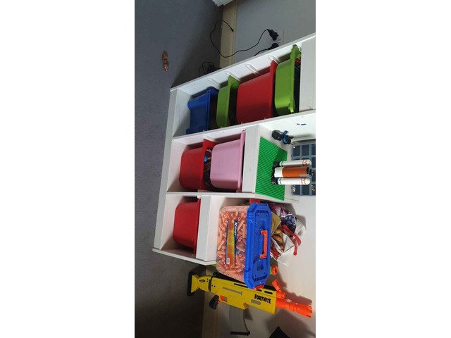 White stand with colour drawers