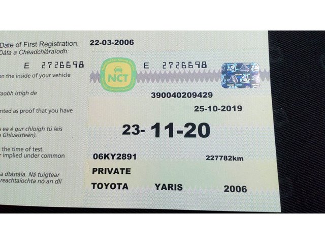 PRICE €1450 - 2006 Toyota Yaris 1.0 L 4 door. 5 speed manual gearbox. Just 2 owners from new. Main dealer service history. Tax'd - NEW NCT to Nov. 2020. Small mark under passenger side door. PRICE €1450 or nearest offer. 130 K miles....PM if interested.