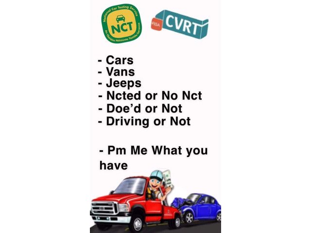All makes and models of vehicles wanted can collect on trailer doesn't matter if driving or not