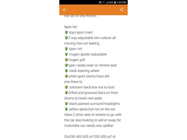Ep1 with ep2 engine fitted for breaking