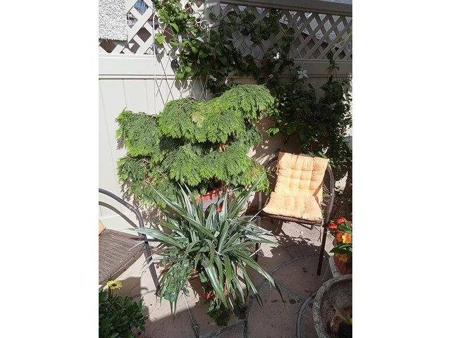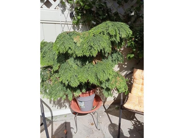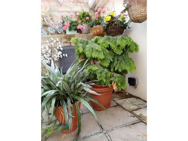 Evergreen shrubs conifer and silver palm shrub well established also selection of LG container's ideal For tree's and shrubs