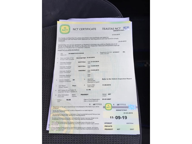 2007 peugeot 407 manuel new nct test