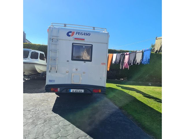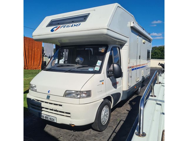 fresh doe fiat with pegaso back 6 birt ,6 seat belts ,2 double beds 2 single beds,shower toilet sink also hot water boiler,3 way fridge hobs oven and grill, smart tv uprated heating system deisel oil instead of gas,2.8 turbo good power,electric step,wind out awning, ladder and roof rack serious callers only had this van for the last 5 year never missed a beat