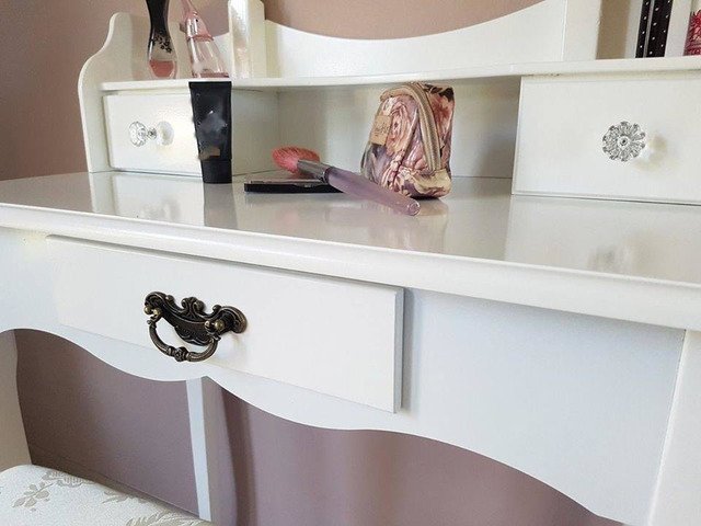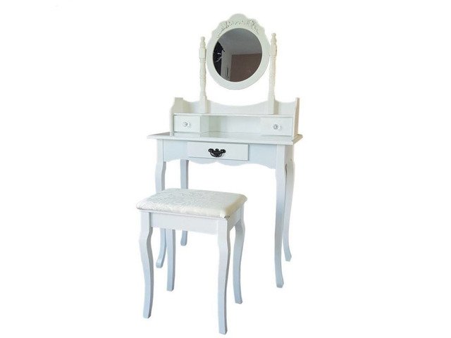 New in Box Sale furniture 50% was € 185 . Available sets consisting of mirror, footstool and 3 drawer dressers. All of this furniture is white. Sizes: Width: 82 cm, Depth: 47 cm, Height: 132 cm.