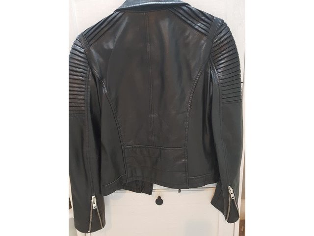 Real Leather biker Jacket. Only worn twice for a very short time so in excellent condition. Like new the leather hasn't even been broken in. Will look even better with more wear. Would fit an 8 to small 12 depending on how you like it to fit. Collection kilcoole. AE.
