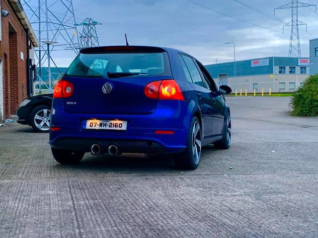 R32 exhaust and rear bumper the bumper is a slight brighter colour blue will have to be sprayed if fussy