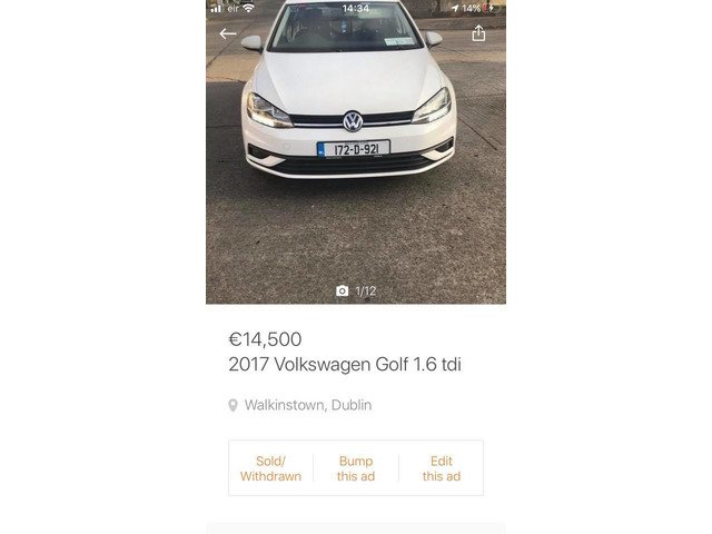 Well selling this little golf 1.6 tdi cheap tax insurance was brought 3 months ago out off car store bearly drive as owner abroad has service history warranty till April alloys all elec touch screen radio stop start there is 89 km on it 1 owner no stupit offers cheapest around no timewasters no cash no drive