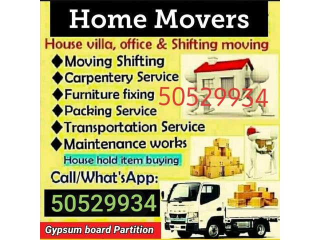 Hi. WE ARE OFFER YOU THE BEST PRICE FOR MOVING 50529934 RELOCATION HOUSE, OFFICE, VILLA. FIXING FURNITURE. . WE HAVE EXPERT CARPENTER FOR FIXING FURNITURE ITEMS AFTER DISMANTLING.OUR SERVICE IS AVAILAVLE ALL OVER IN QATAR. OUR SERVICE 1.BED ROOM SET FITING……… 2.ANY KIND OF FURNITURE ITEMS FIXING…. 3.PACKING 4.MOVING HOUSE VILLA OFFICE RELOCATION. . Call on Whatsap /50529934