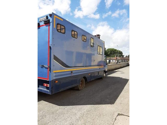 98 Leyland Daf 45 x 150 HP, turbo,power steering x7.5 tonne for sale with large living,fully fitted kitchen. Holds 4 ponies or 3 horses. Electric ramp, hook up,external lockers. Very clean lorry. Contact by phone only to 086 1519936.