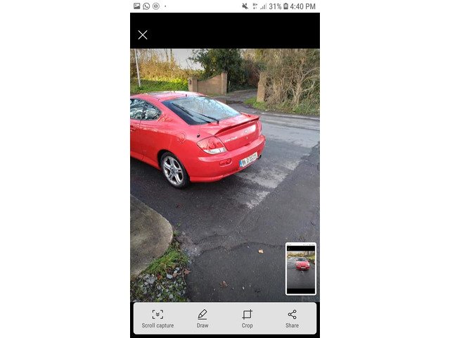 2006 Hyundai coupe 1.8 petrol nct tax expired immaculate condition inside and out all electricals working perfect 4 alloy wheels with good tyres black leather seats sunroof car has no faults wouldn't need much for nct €500 might swap.