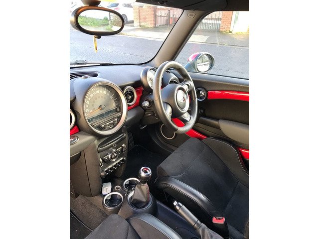 1.6L I-4 Engine Petrol,210 Break Horsepower,6 Speed Manual,Aux/Media Connection,John Cooper Works Recaro Sports Seats,Sports Mode,Air Conditioning,John Cooper Works Steering Wheel,Rear Spoiler,Interior Surface red,Alarm System,Automatic Locking When Driving Off,17'' Alloy Wheels,Push Button - Keyless Start,Hologram speedometer installed,Sports Exhaust,JCW floor Mats in front ,Mini light up cup holder mats ,Rear sensors