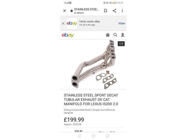 Lexus is200 stainless manifold for sale , bought new 2 months ago , all gaskets there for it , give a sweet note and increases flow through engine ,€200 no offs