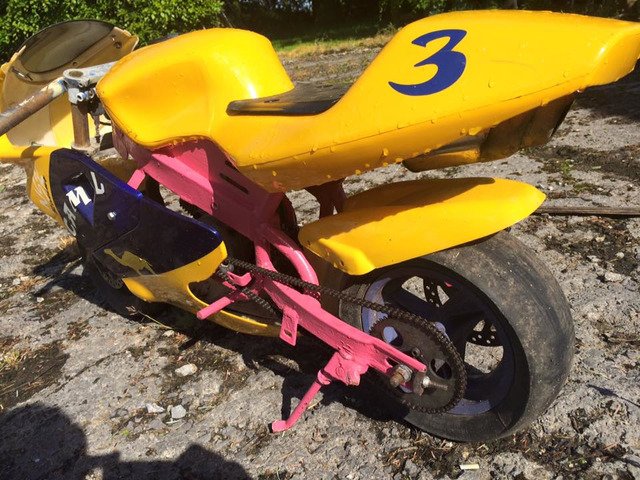 This is my mini Moto I have custom it it runs and its really fun and it's fast. With new engine and brakes and new fuel line with new carb in it and it has always be well cleaned