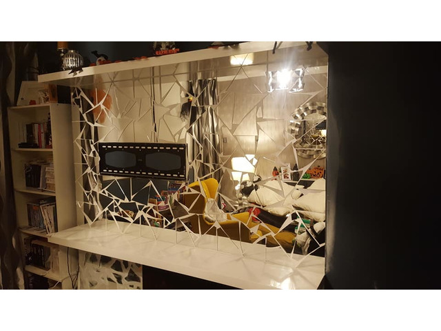 Broken mirror can be applied to almost any upright flat surface