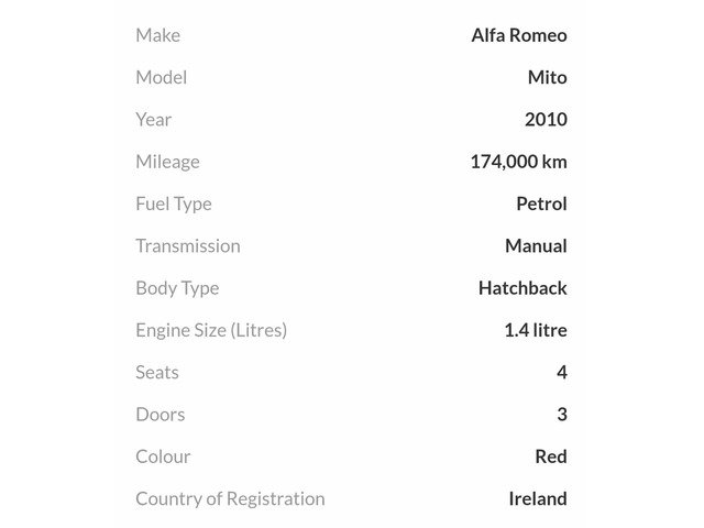 Mito 2010 red 1.4 petrol